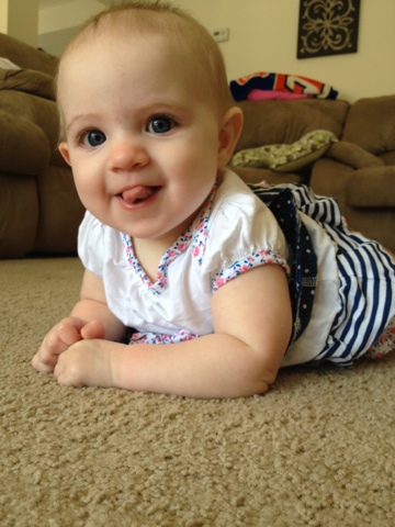 Milestones: CeCe is still working on sitting up on her own and is doing quite well. She is still scooting and rolling all over the place. And her baby push ups are certainly her favorite form of exercise and the downward dog is definitely her favorite yoga position.